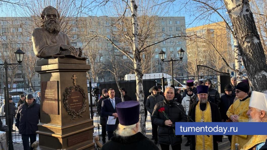 Торжественное открытие памятника святителю Луке Крымскому (в миру – Валентину Войно-Ясенецкому) состоялось у храма иконы Божией Матери «Целительница» на улице Мельникайте. Церемонию провёл митрополит Тобольский и Тюменский Димитрий.