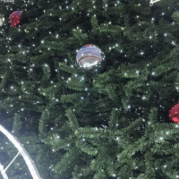 Она украшена двухметровыми фигурами бобров и лис, огромными снежинками, колокольчиками, красными и серебристыми шарами.